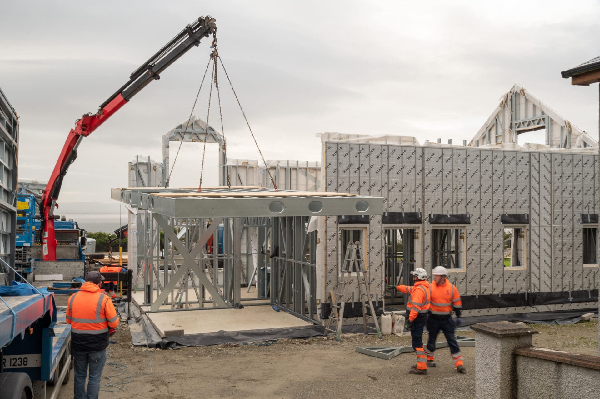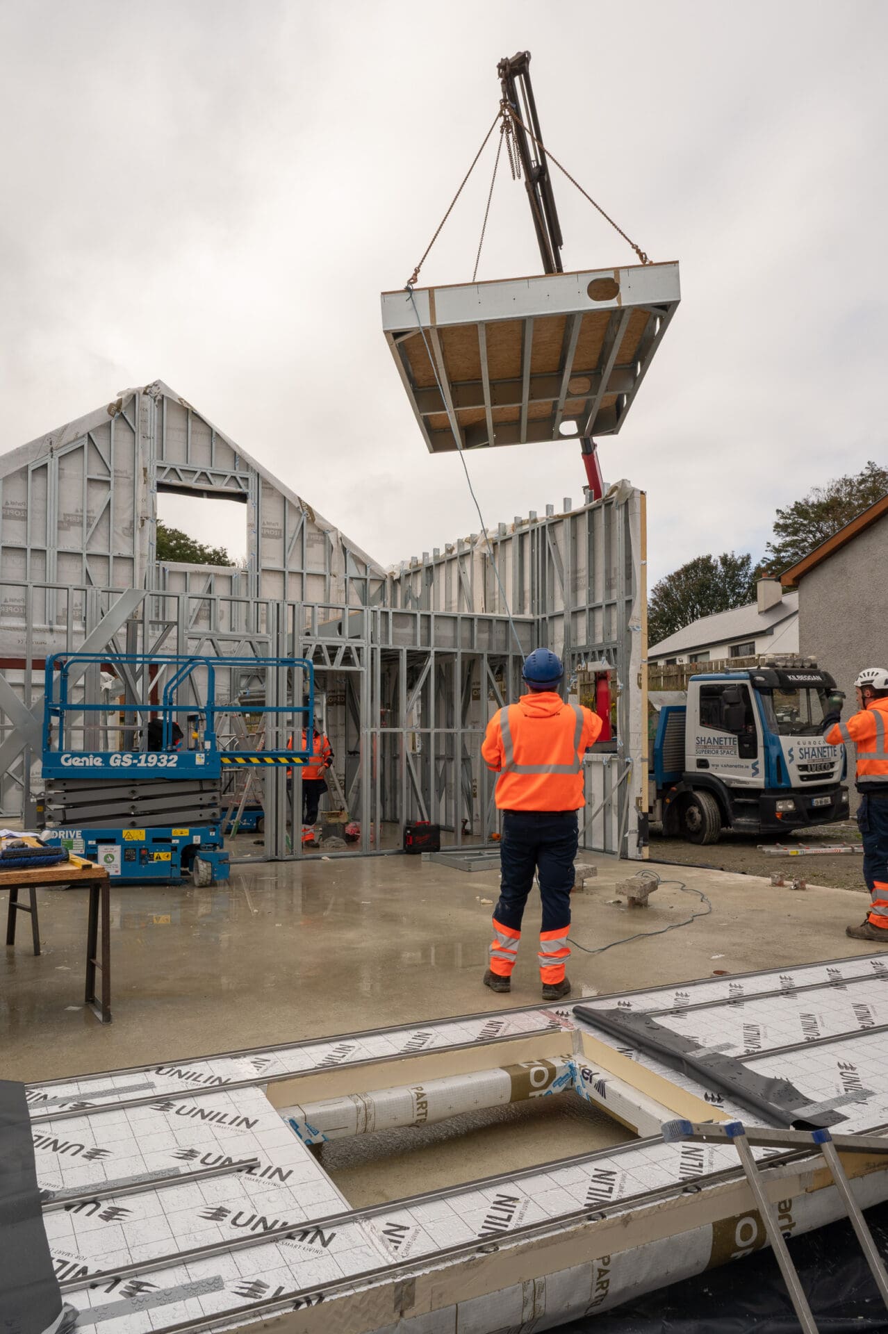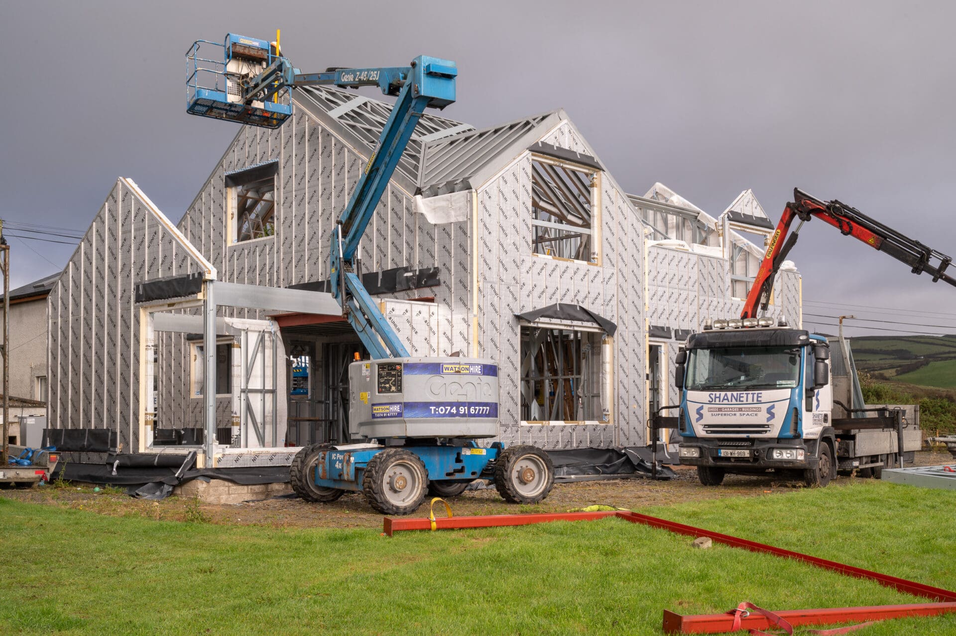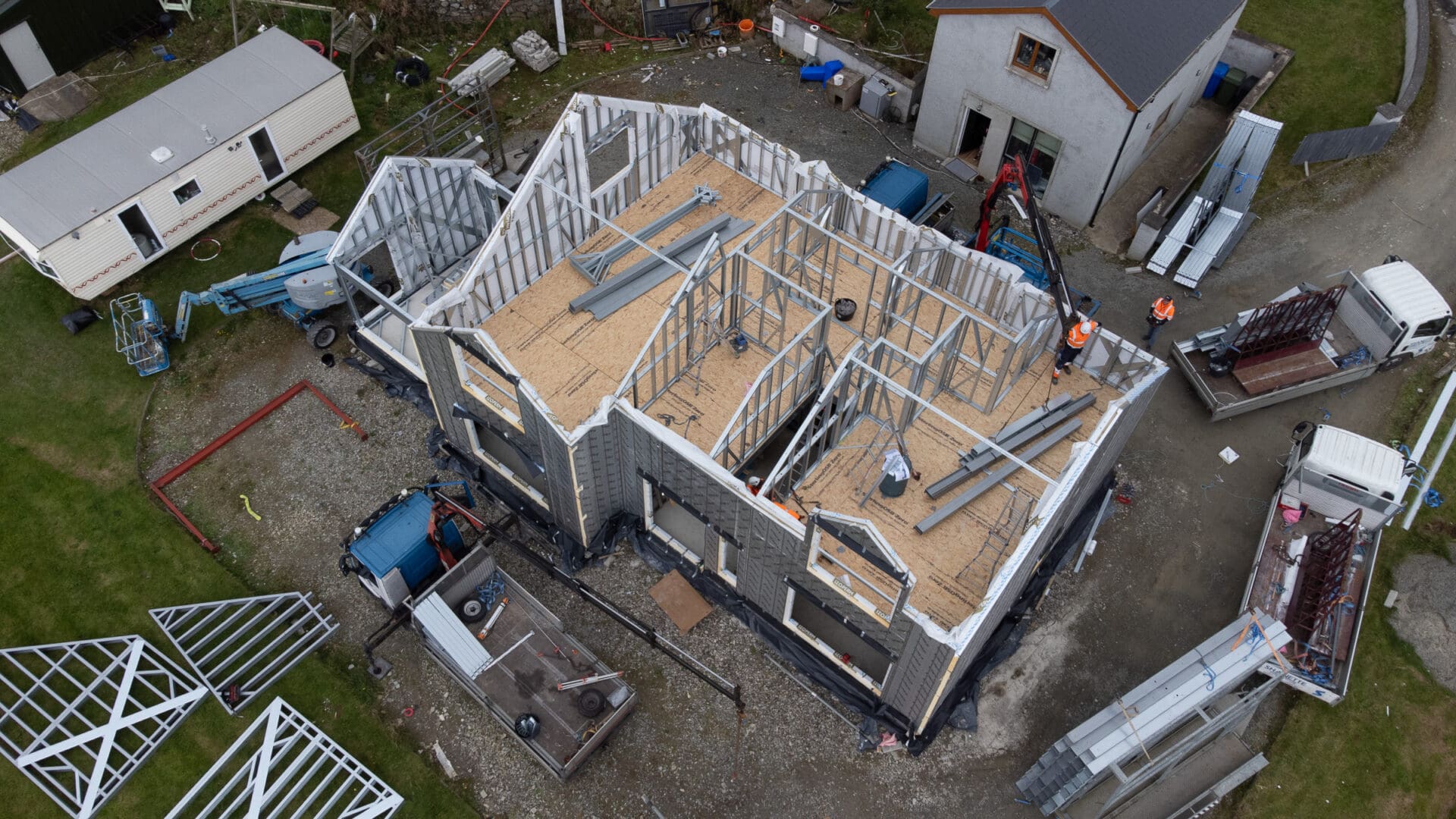The external walls were constructed using System 1 of our wall build-up options, a hybrid steel frame system incorporating PIR insulation with a masonry outer leaf. This approach combines the structural precision of light gauge steel with the familiarity and durability of traditional blockwork, making it a popular choice for one-off homes across Ireland.