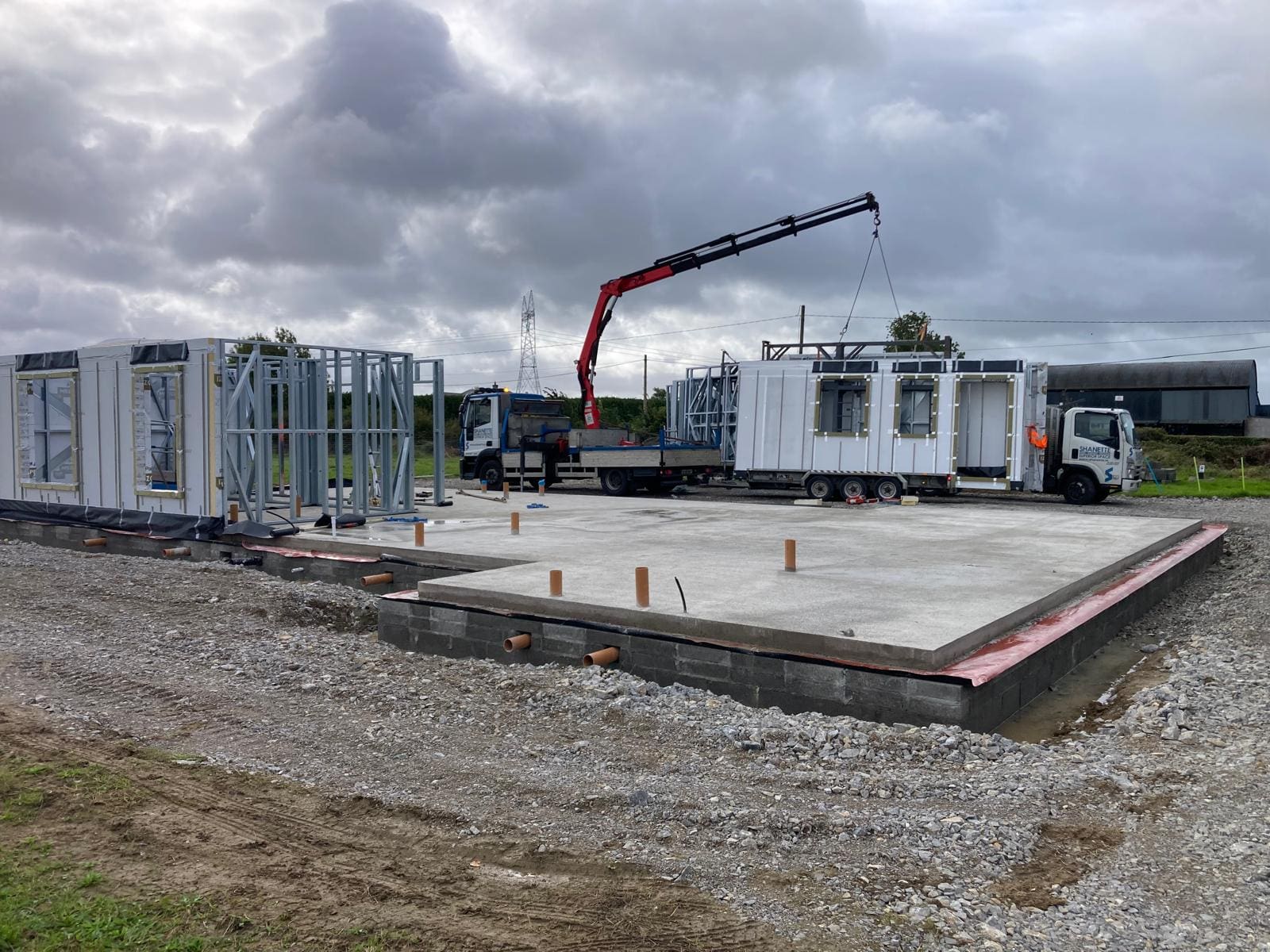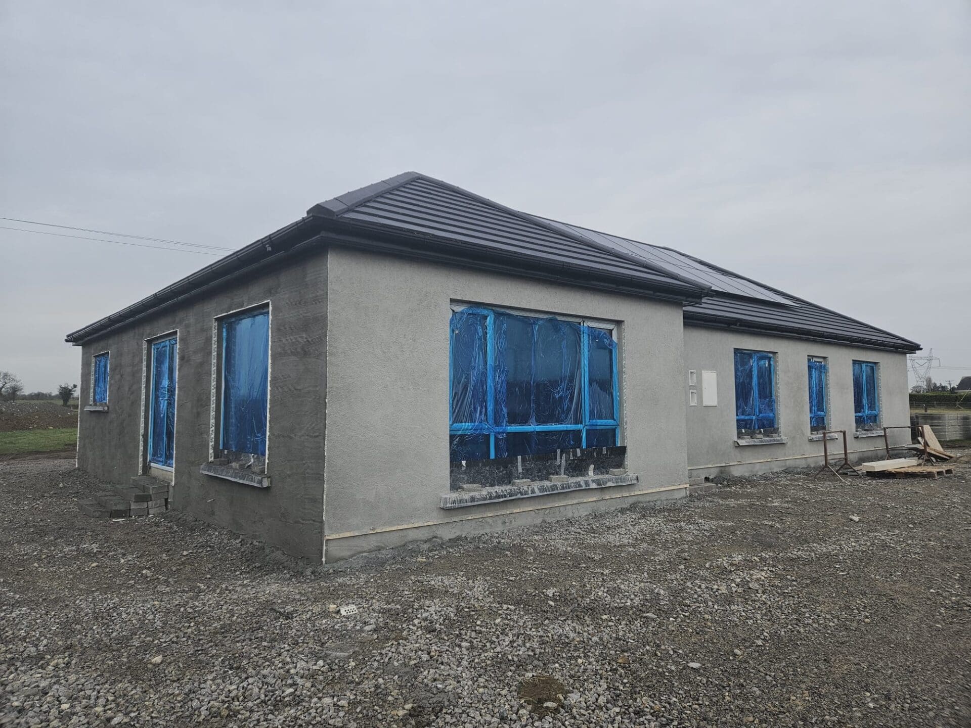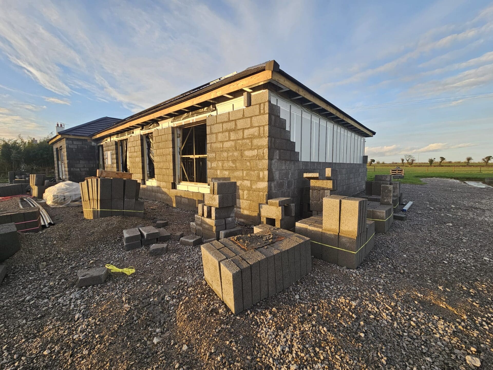 The external walls were constructed using System 1 of our wall build-up options, a hybrid steel frame system combining PIR insulation within the steel frame and a masonry outer leaf. This approach provides excellent thermal performance while allowing the client’s builder to complete traditional blockwork and render externally.